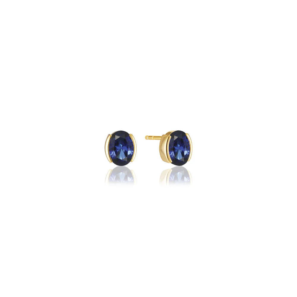 Øredobber laget av 18 karat gullbelagt 925 sterlingsølv, polert overflate og håndsett med fasettslipte blå zirkonia.