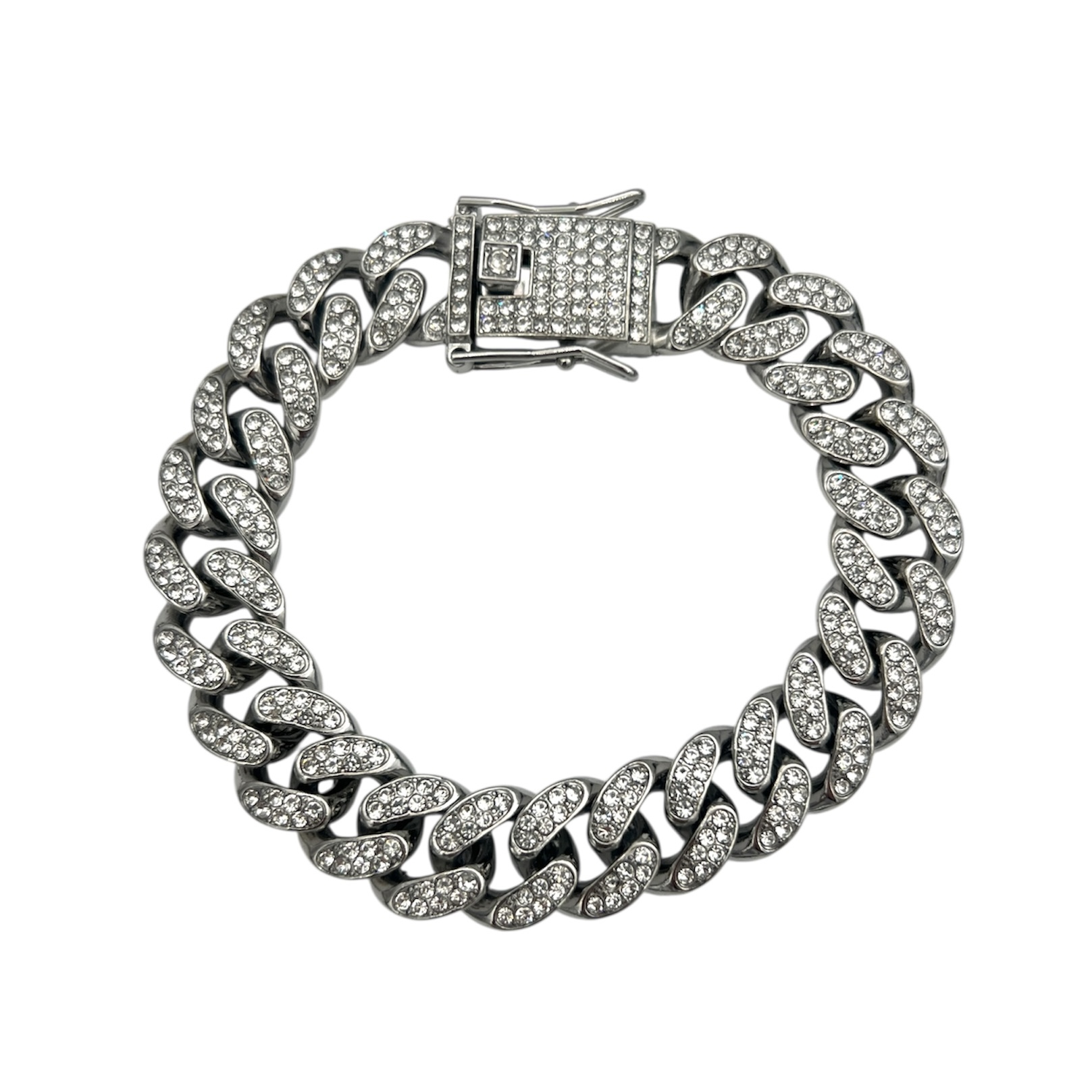 Forsølvet panserarmbånd, med fattede klare stener.