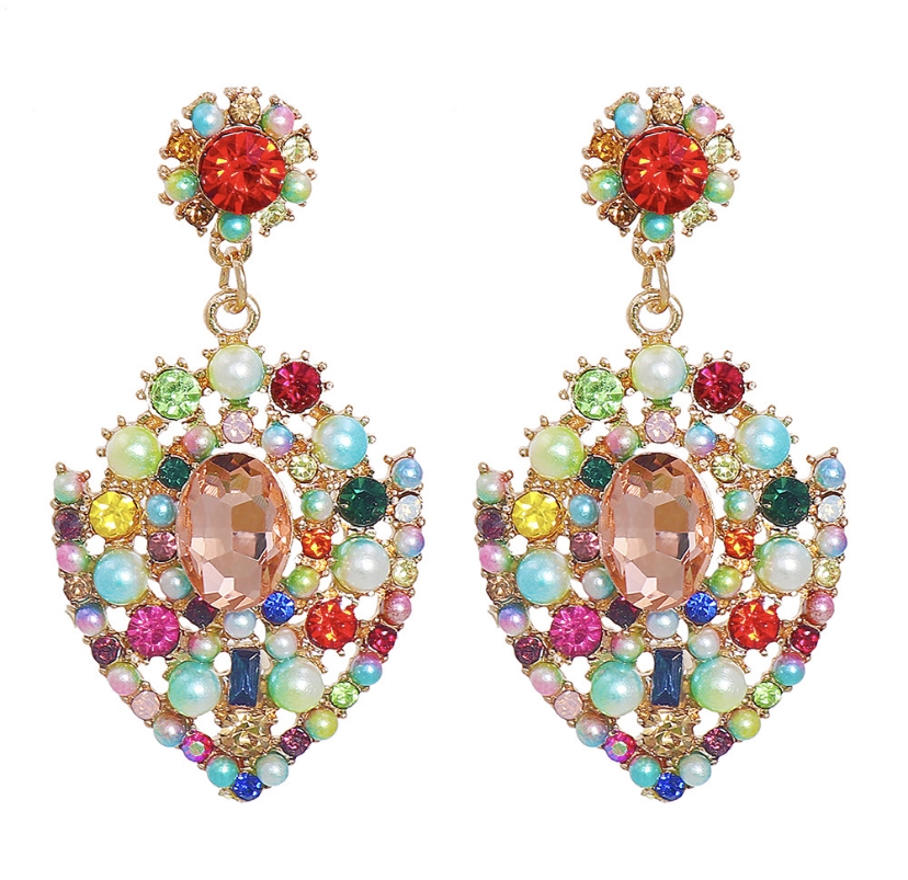 18K forgylte ørepynt med mulitfarget Zirkonia, perler og 925S sølvstift