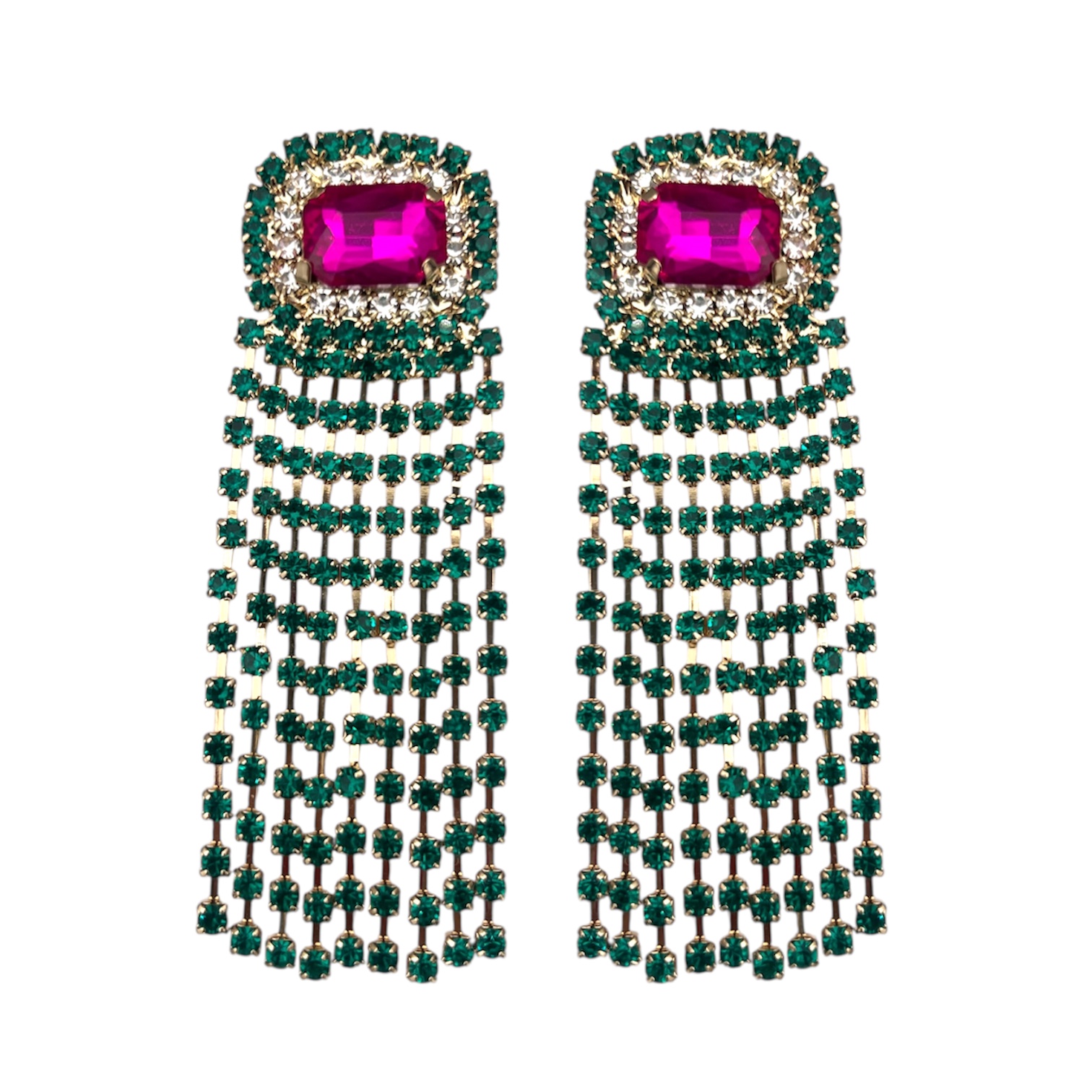 18K forgylte ørepynt med klare, dyp turkise og knallrosa Zirkonia og 925S sølvstift