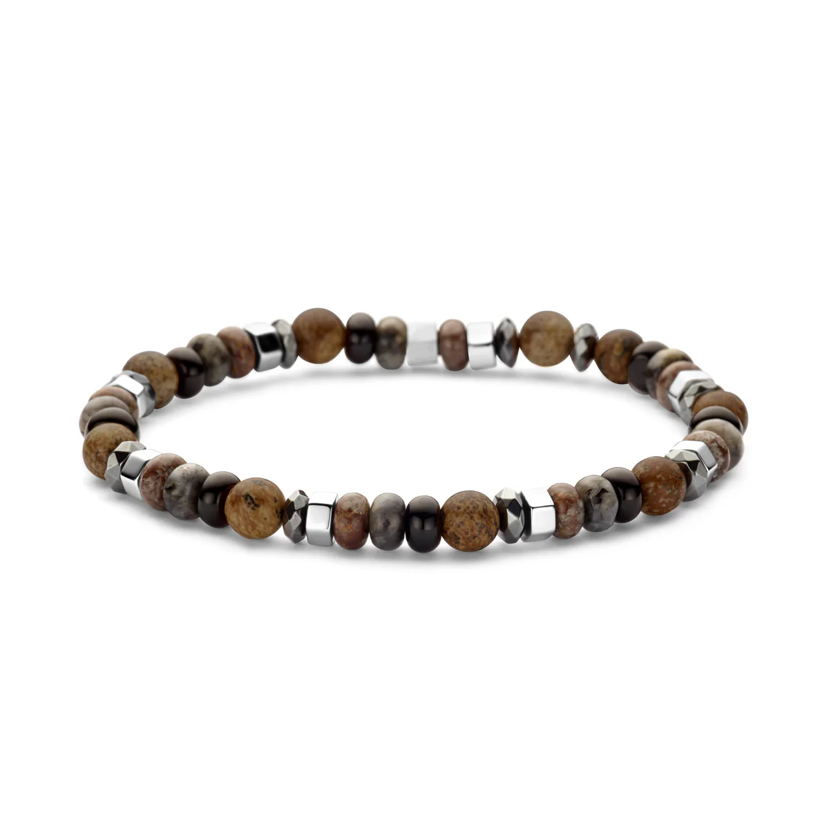 Beskrivelse Dette armbåndet er perfekt for enhver anledning og et slående tilbehør som blander jordfarger med moderne design. Armbåndet på 18,5 cm har en dynamisk blanding av perler, og natursteinene komplementeres av en børstet IPS-finish. Det perfekte statement-plagg for den moderne mannen! Størrelse: 18,5 cm Steintype: Gul: Bildestein, svart agatkuleramme, labradoritt, bronsitt, sekskantet hematitt og hematitt / Grønn: Moseagat, svart agatkuleramme, labradoritt, bronsitt, sekskantet hematitt og hematitt / Brun: Svart agat, svart agatkuleramme, labradoritt, bronsitt, sekskantet hematitt og hematitt |
