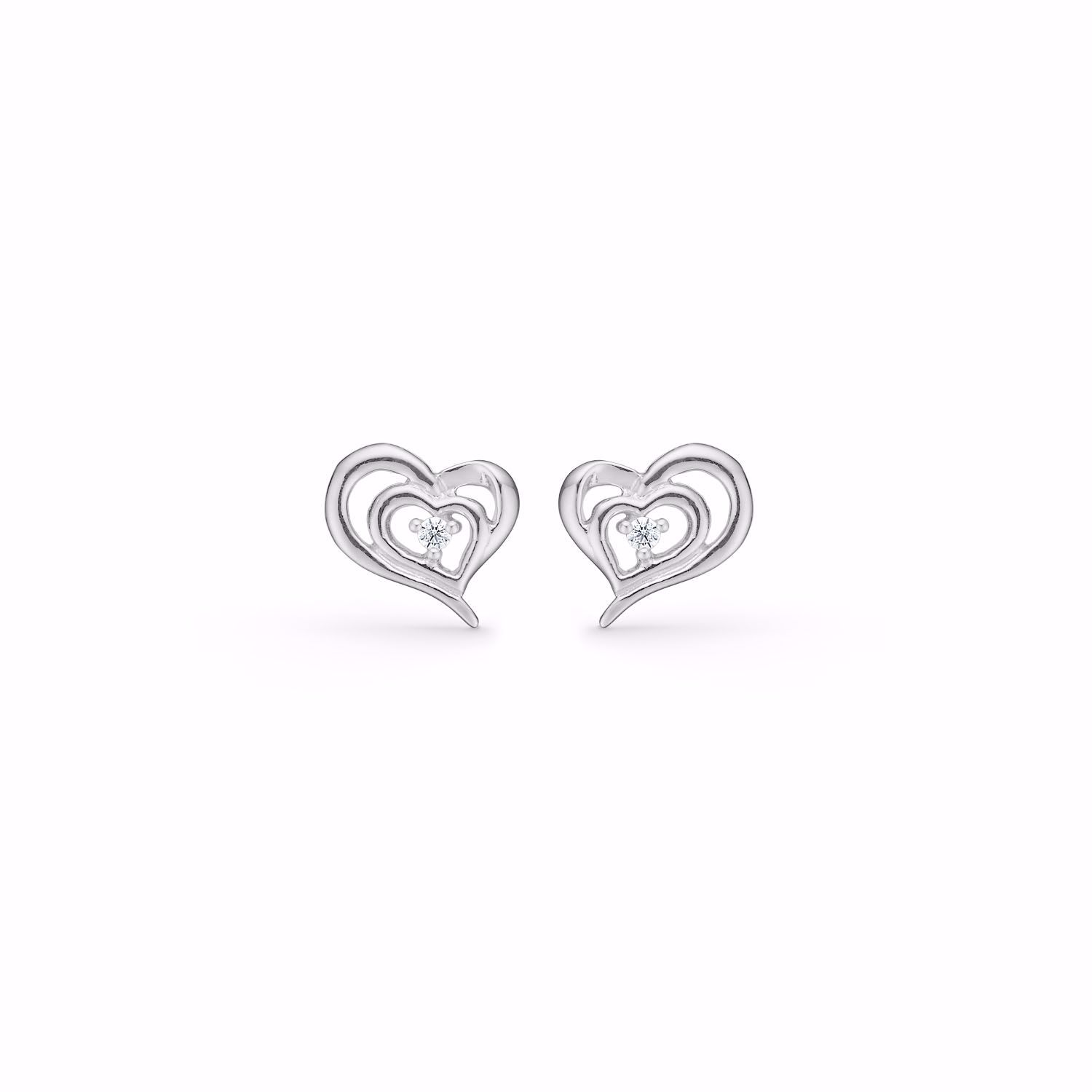 Sølv hjerte ørestikkere med zirkonia