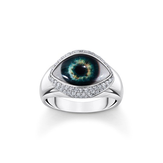 Beskrivelse Material: Sølv, 925 Steiner: Cubic zirkona Høyde ca. 13,0 mm Bredde ca. 16,0 mm Tykkelse ca. 3,5 mm - Slående design inspirert av det altseende øyet med hvite zirkoniasteiner - Ring med bokstaven THOMAS SABO på undersiden Det altseende øyet står for økt bevissthet og en dyp oppfatning av vakre ting. Dermed inspirerer det oss i alle faser av livet. Betydningen av dette symbolet kan være forskjellig for alle og er veldig personlig. Det altseende øyet er hovedsakelig assosiert med en tilstand av full våkenhet når vi er fullt bevisste på forbindelsen mellom oss, andre mennesker og ukjente verdener. Denne betydningen er kjernen i denne ringen laget av resirkulert sølv med sine glitrende, hvite zirkoniasteiner som pynter kantene. Det altseende øyet er designet i 3D og tiltrekker seg derfor alles oppmerksomhet. |
