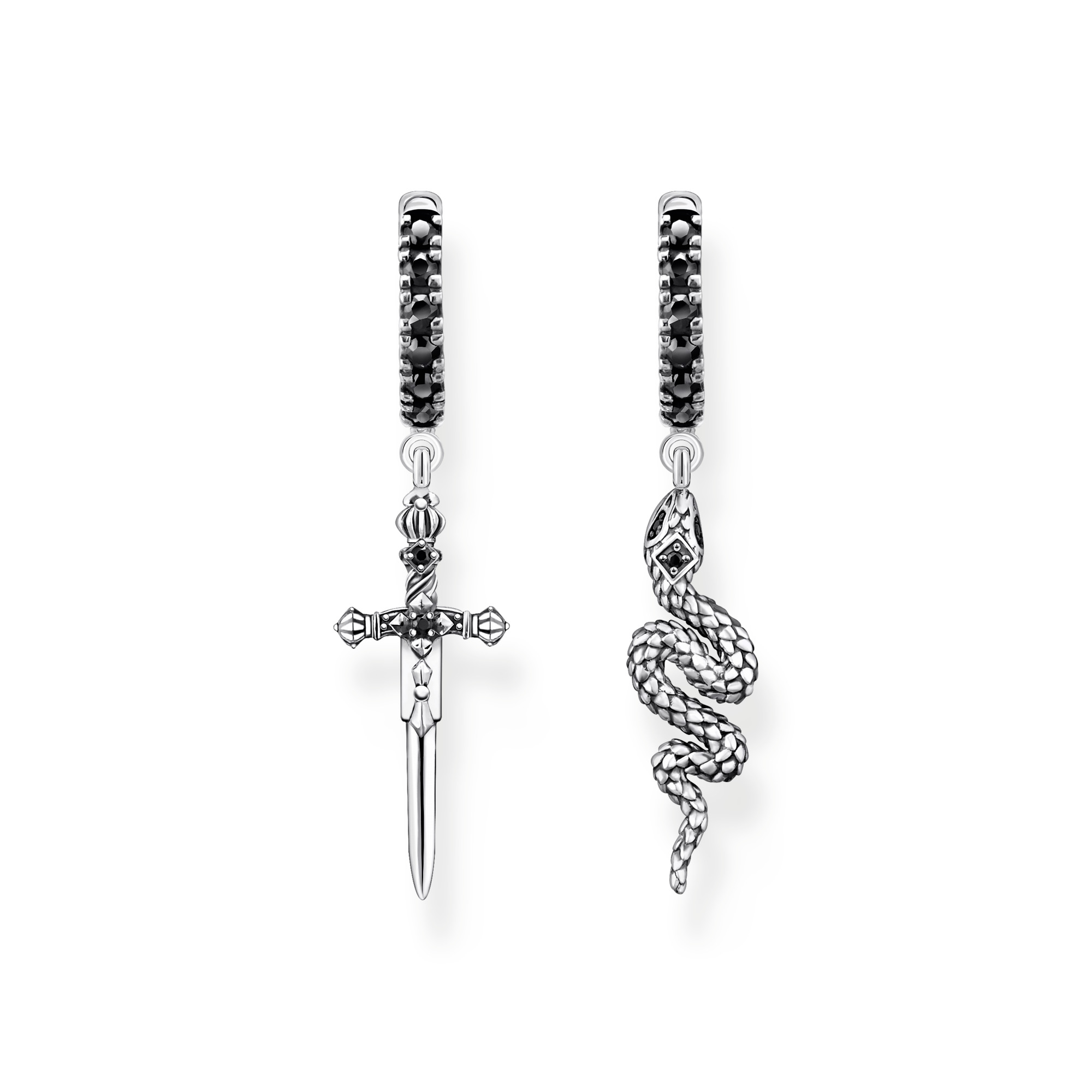 Beskrivelse Materiale: Resirkulert 925 sølv, oksidert Steiner: Cubic zirkonia Høyde: ca. 35,0 mm Bredde: ca. 8,0 mm - Øredobber laget av svertet 925 sterlingsølv - Med anheng i forskjellige stiler: detaljert slange og sverd - Satt med svarte, fasetterte kubiske zirkoniasteiner Mystisk slange: Disse uttrykksfulle sølvøredobbene imponerer med anheng i forskjellige stiler. Slangen ser nesten levende ut i 3D med sine fascinerende skjell og fint utformede kropp. Sverdet er også forseggjort i 3D-utseende med spesiell ornamentikk. Disse høykvalitets øredobbene med anheng er laget av svertet 925 sterlingsølv. Akkurat som sverdet er øynene og skjellene til slangen dekorert med svarte kubiske zirkoniasteiner. Takket være dem får dette ørepynten en edel utstråling. |