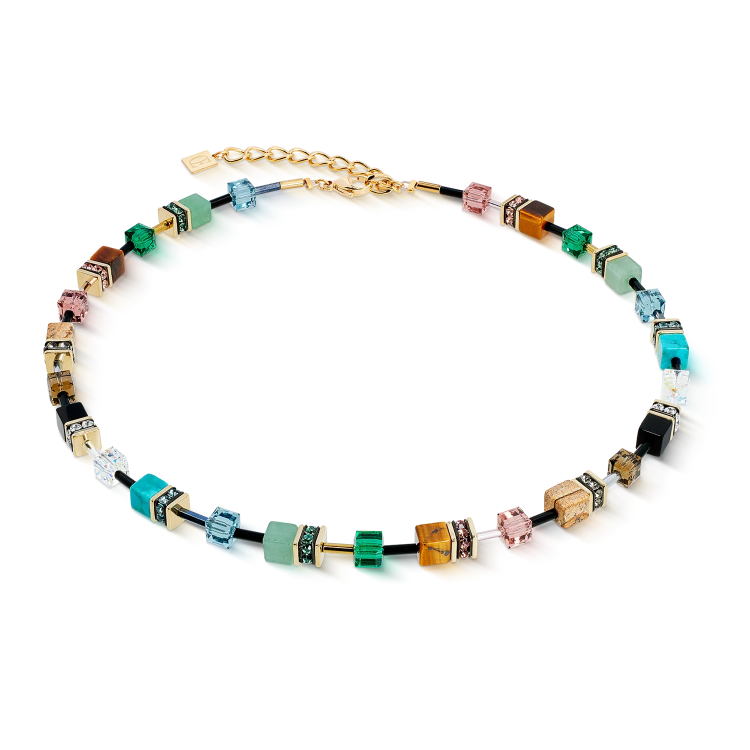 Beskrivelse En av våre mest solgte leverandører! MATERIALER: - Turkis - Landskapsjaspis - Grønn aventurin - Tigerøye - Swarovski®-krystaller - Rhinestone-rondeller - Glass - Rustfritt stål, forgylt LENGDE: - 42 cm + 6 cm STYRKE: - 0,6 cm Smykket består av ulike stener, metaller og krystaller. Kan kjøpes hver for seg eller som et sett. Smykkene er håndlaget i Tyskland! |