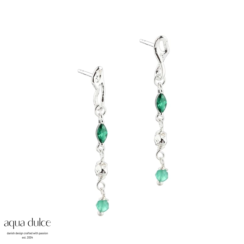 Øreheng i sterlingsølv med grønn agate og zirkonia.