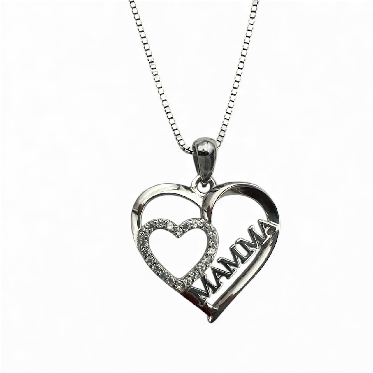 Sølv hjerte "mamma" anheng
