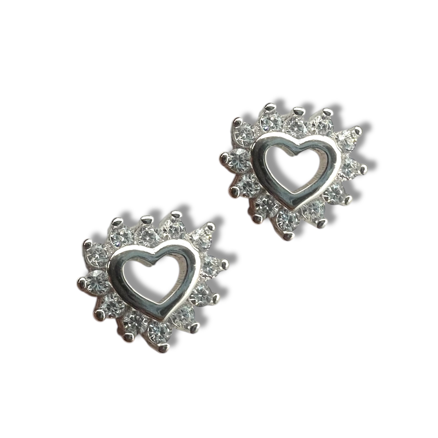 Sølv blank zirkonia hjerte ørepynt