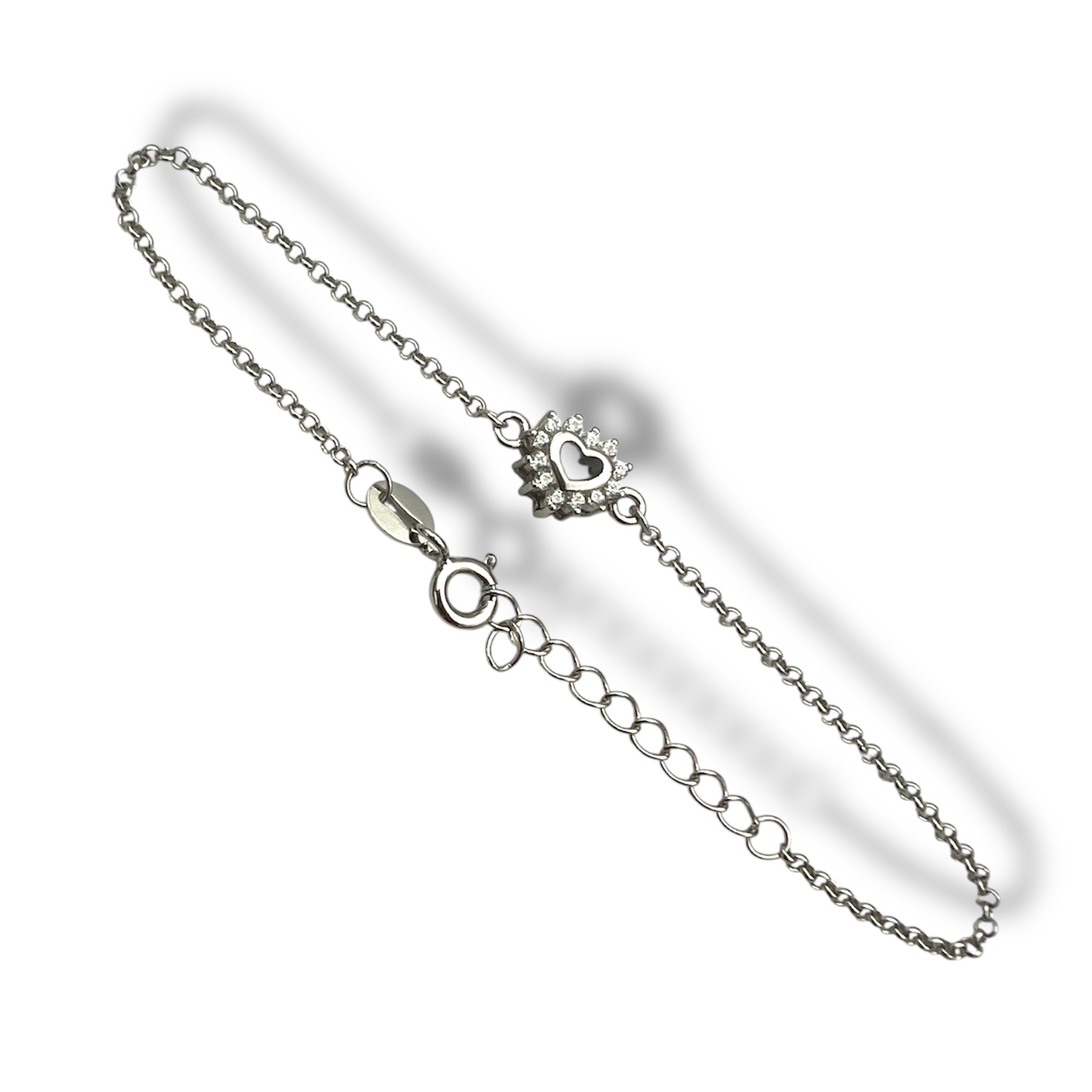 Sølv blank zirkonia hjerte armbånd