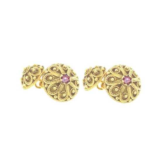 Filigran forgylt mansjettknappar stor/liten - Lyserosa 05