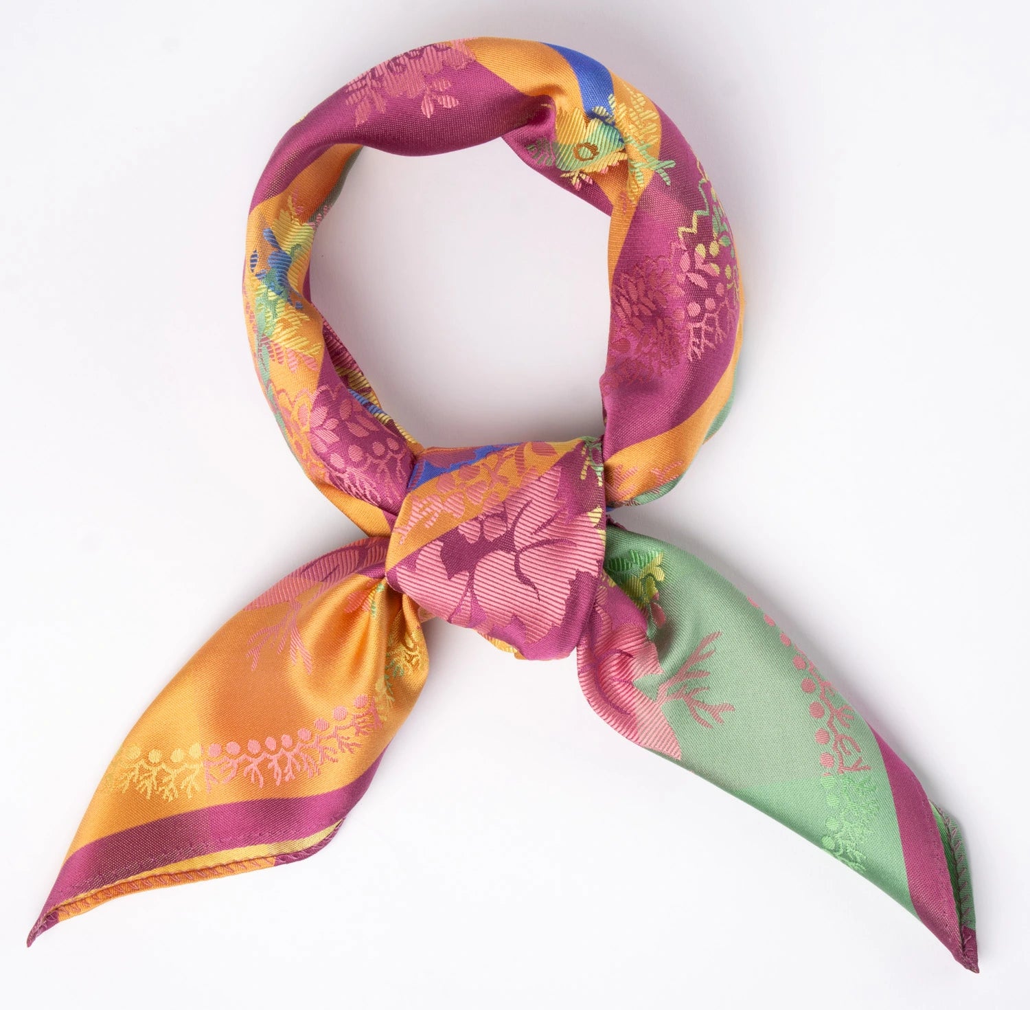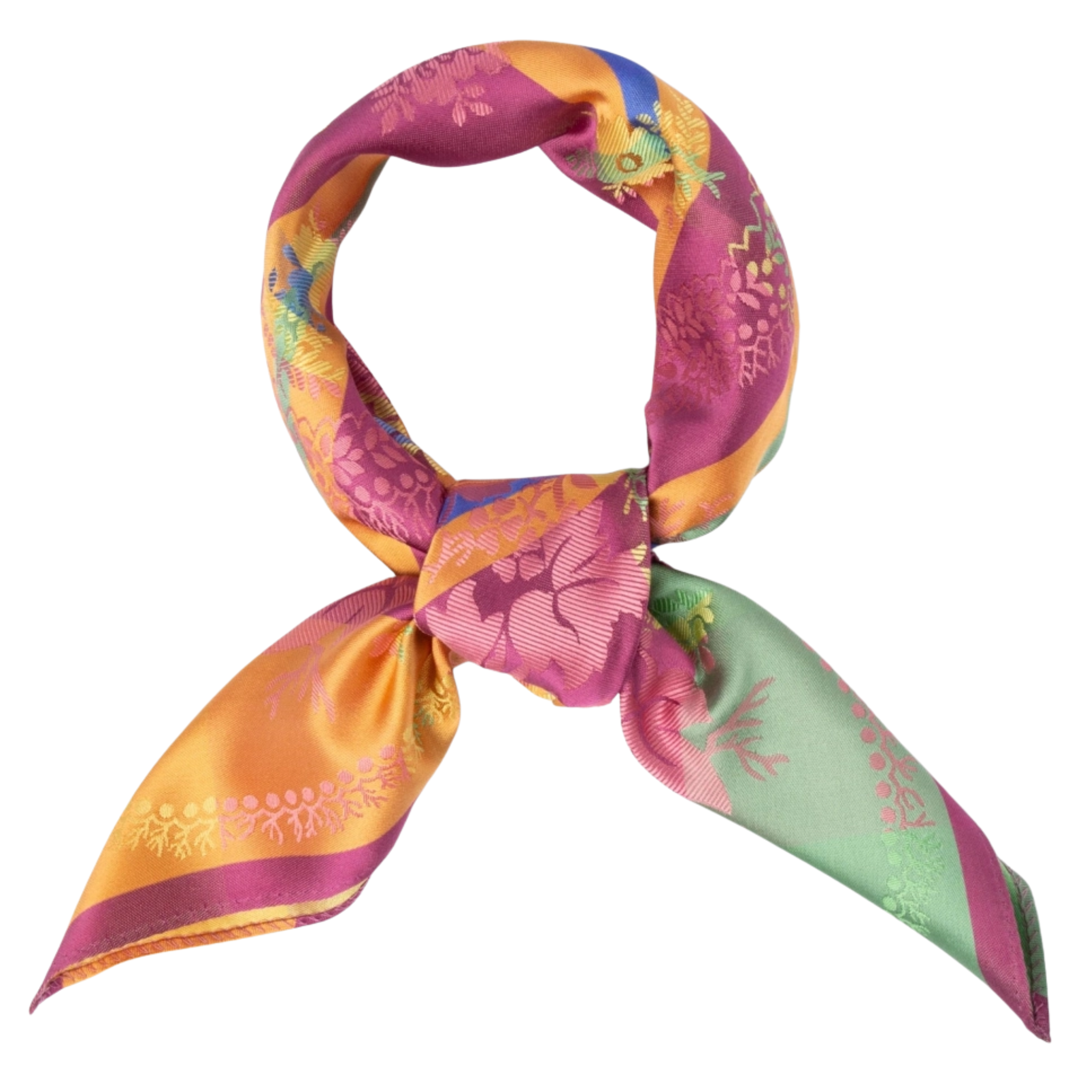 Beskrivelse Silkeskjerf til pynt, bunad og festdrakter. Silkeskjerf brukes til bunader og festdrakter over hele landet, men passer like godt som en "fargeklatt" for antrekk i hverdagen. Silke har mange gode egenskaper. Det er mykt og godt å ha på samtidig som det varmer om det er kaldt. Vi bruker kun den beste silke når vi produserer våre skjerf og de har flotte jacquard mønstre med farger som passer i tiden. Behandling: Håndvask med såpe beregnet for silke Kvalitet: 100% silke Størrelse: 75 x 75 cm Bilde lånt av leverandør. |