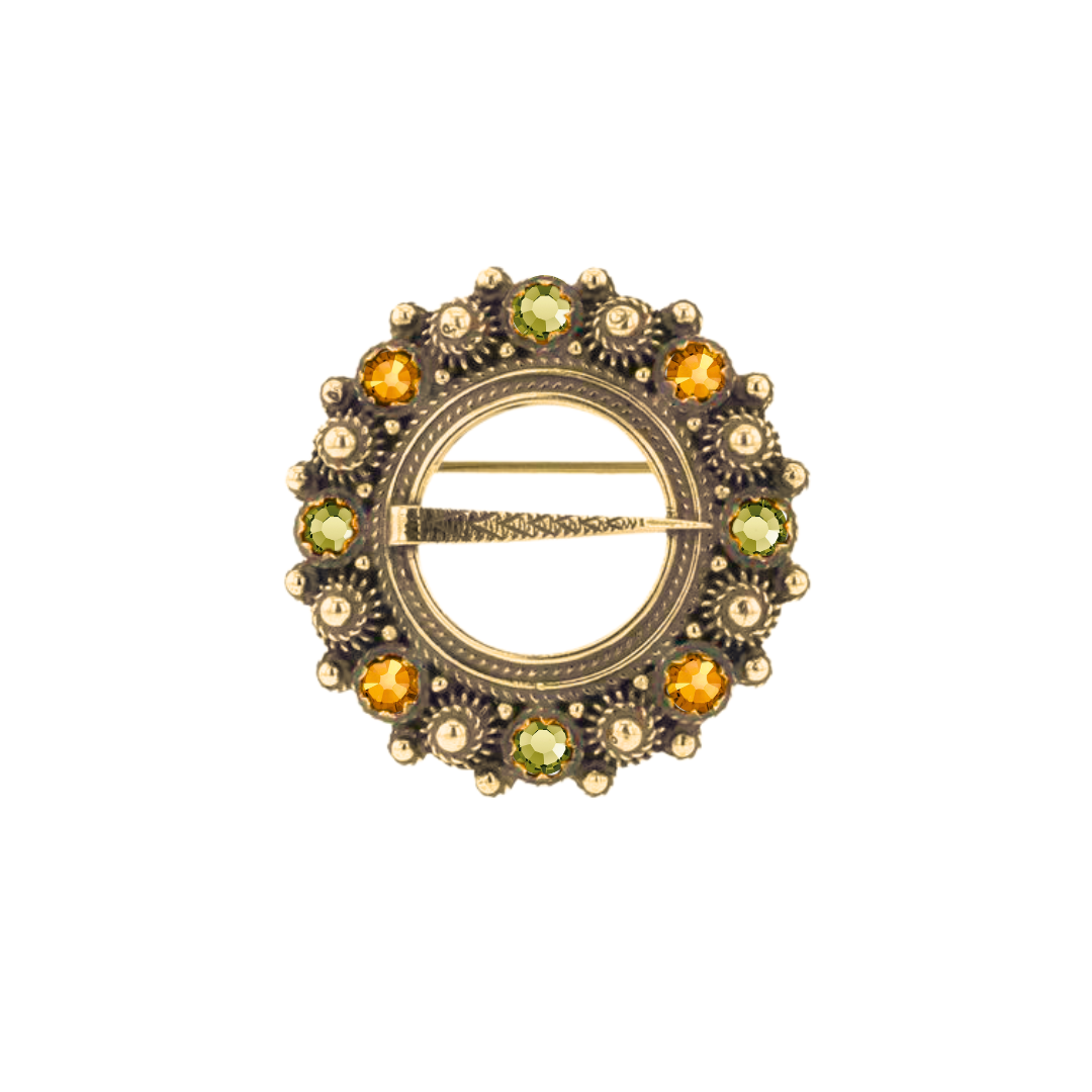 Gammel forgylt sølje med krystall i farge 11 Oliven & 38 topas.