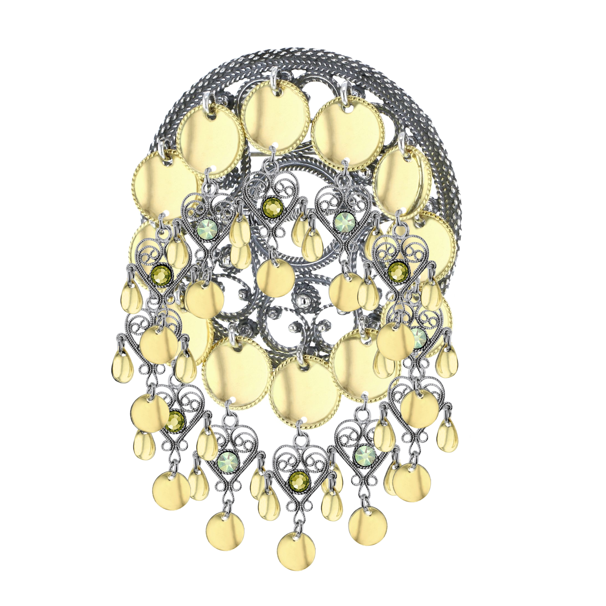 Sølje med krystaller og forgylte lauv - 11 Oliven & 28 nordlys grønn