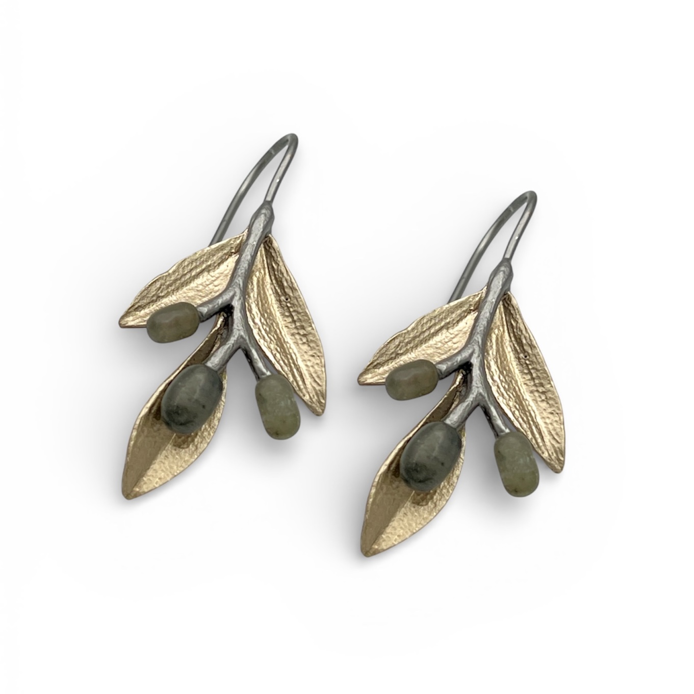 Beskrivelse Den lille øya Patmos ligger i Hellas' Dodekanesiske øygruppe, omgitt av turkisblått vann. Den lille hvitkalkede landsbyen på klippen skinner langveisfra. Oliventrærne står i vakre rekker, og olivenene kan skimtes mellom trærne. Patmos Olive-øredobber er små, pene olivengrener. Perfekte å ha på seg og få deg til å føle deg vakker. Detaljer og materialer Metall: Bronse og detaljer i 14 karat gull Edelsten: Labradoritt, 2 stk. på 3 x 5 mm og 1 stk. på 4 x 6 mm Mål: 30 mm høy x 20 mm bred Smykkene våre er alltid allergitestet og nikkelfrie. |