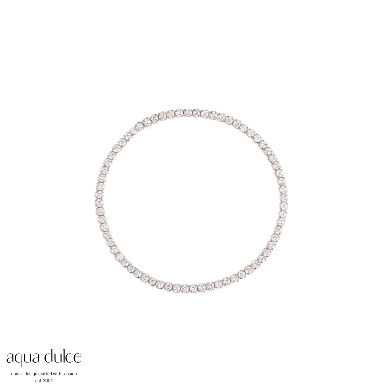 Sølv armbånd på strikk med cubic zirkonia, 2,5mm.