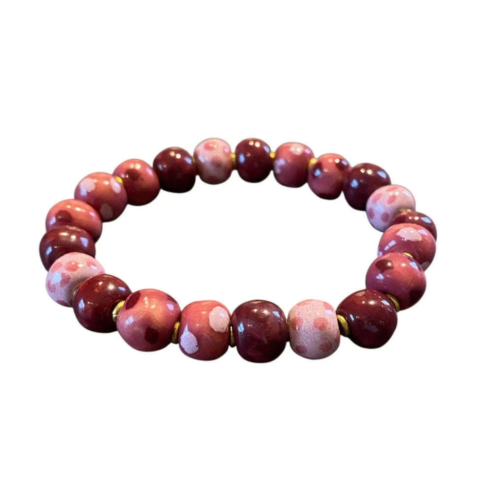 Laget av keramink. Håndmalte perler fra Kenya.