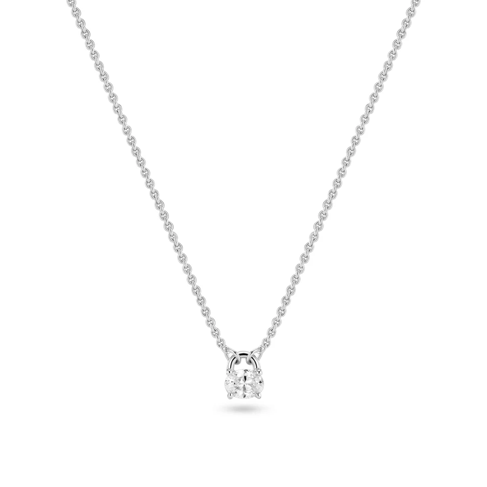Beskrivelse Halskjede laget av rhodiumbelagt 925 sterlingsølv, polert overflate og håndsett med fasettslipte hvite zirkoniaer. Mål på halskjede: Lengde 4 mm, bredde 3 mm, kjedelengde opptil 45 cm - justerbar |