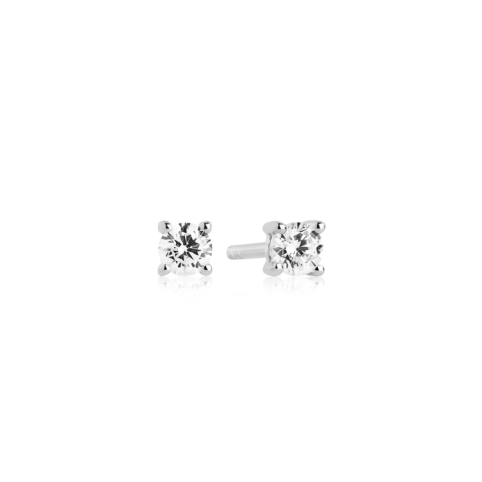 Øredobber laget av rhodiumbelagt 925 sterlingsølv, polert overflate og håndsett med fasettslipte hvite zirkoniaer.