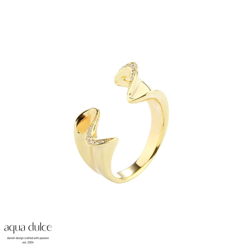 Beskrivelse Fingerring i forgylt sterlingsølv med blank overflate og cubic zirkonia. Størrelsen kan reguleres fra 53-55 - 100% nikkelfri - 925 Sterling sølv |