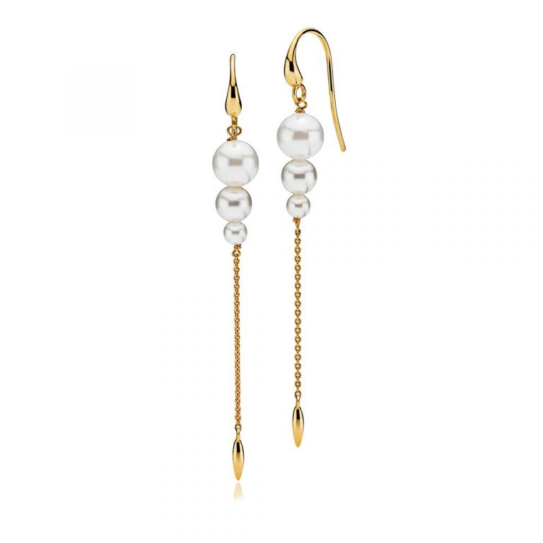 Beskrivelse Flotte lange øreringer med ekte ferskvannsperler, fremstillet i 18 karat gullbelagt sterlingsølv. MISS PEARL kolleksjonen består av ørekrok, ørestikk, creol ørering, anheng, armbånd og halskjede. Serien føres med hvite ferskvannsperler i sølv, og gullbelagt sølv, og med ekte grønne malakitt stein i gullbelagt sølv. – 18 karat gullbelagt sølv – 3 ferskvannsperler i varierende størrelse Største perle: 8 mm Lengde: 70 mm Bilde lånt fra www.izabelcamille.com |