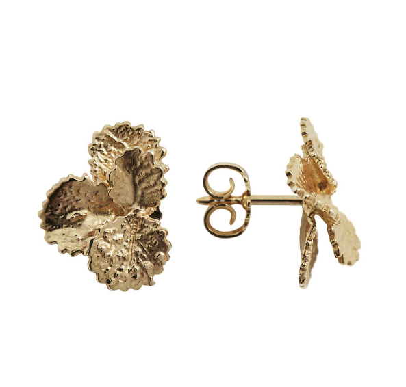 Beskrivelse En nydelig ørepynt i forgylt sølv 925. Løv ørepynt 4 løv har et levende design inspirert av fjellbjørka og er veldig flatterende på øreflippen. Kommer med stikk og stopper, str. 12x14mm Bilde lånt fra leverandør nettside: https://huldresolv.no |