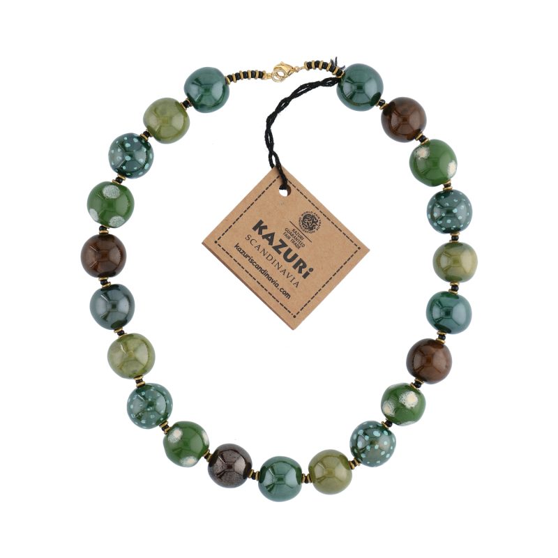 Laget av keramink. Håndmalte perler fra Kenya.