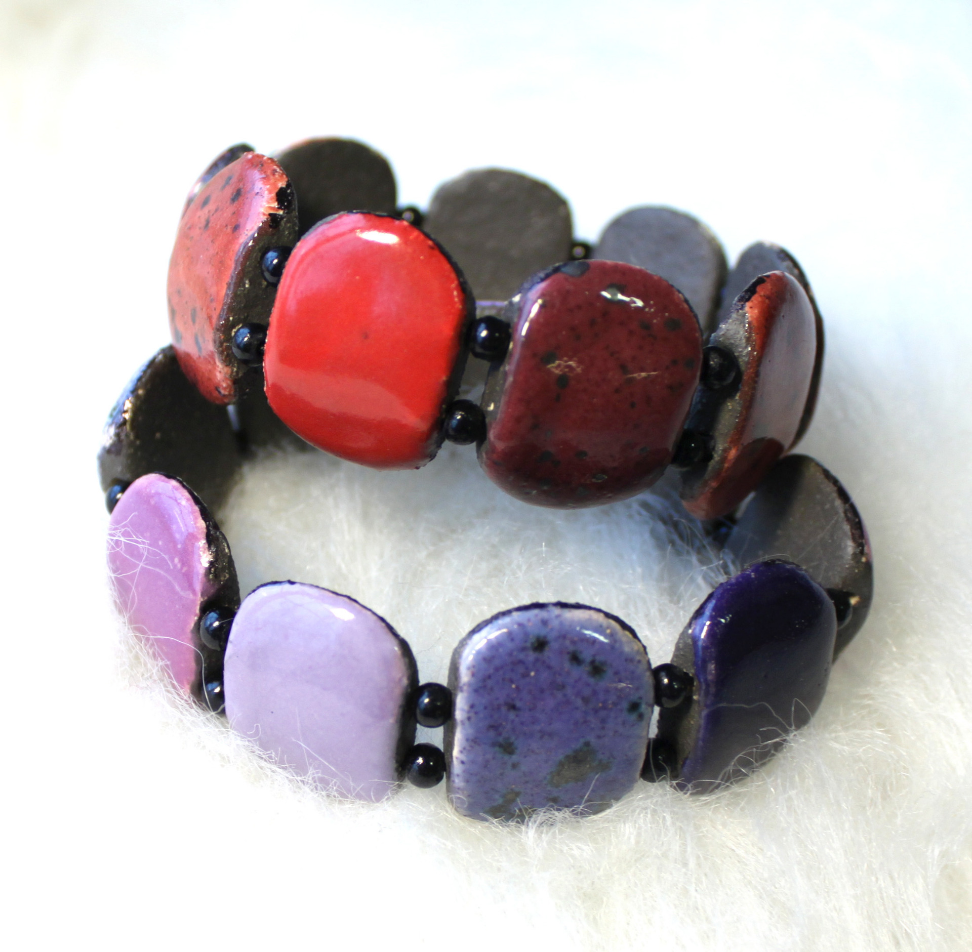 Armbånd i keramikk med strikk. Størrelse 2, 5 x 20 cm.