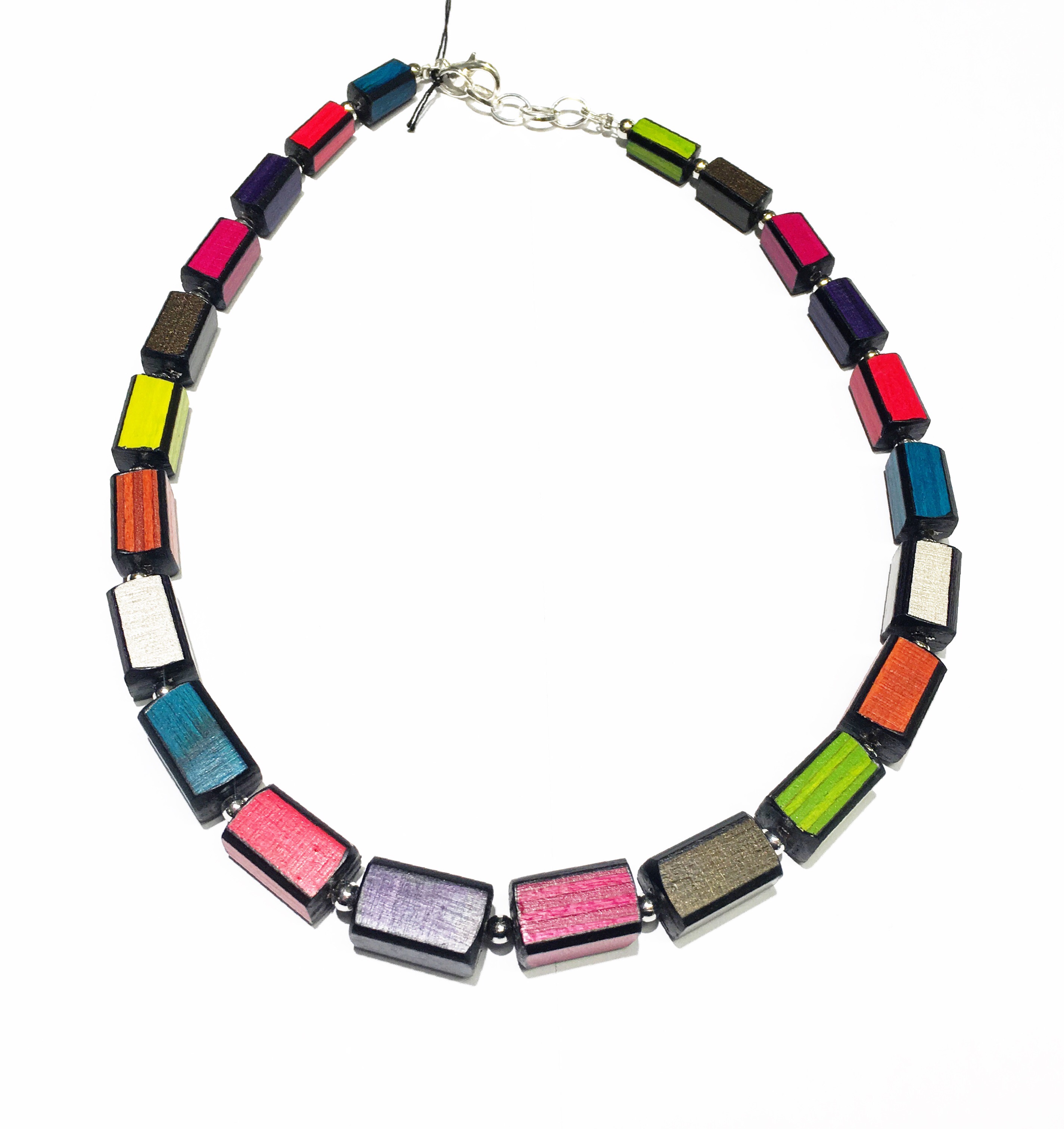 Kjede i tre i ulike fargevarianter. Størrelse 1,4 cm x 45 cm. + forlengelse lenke.