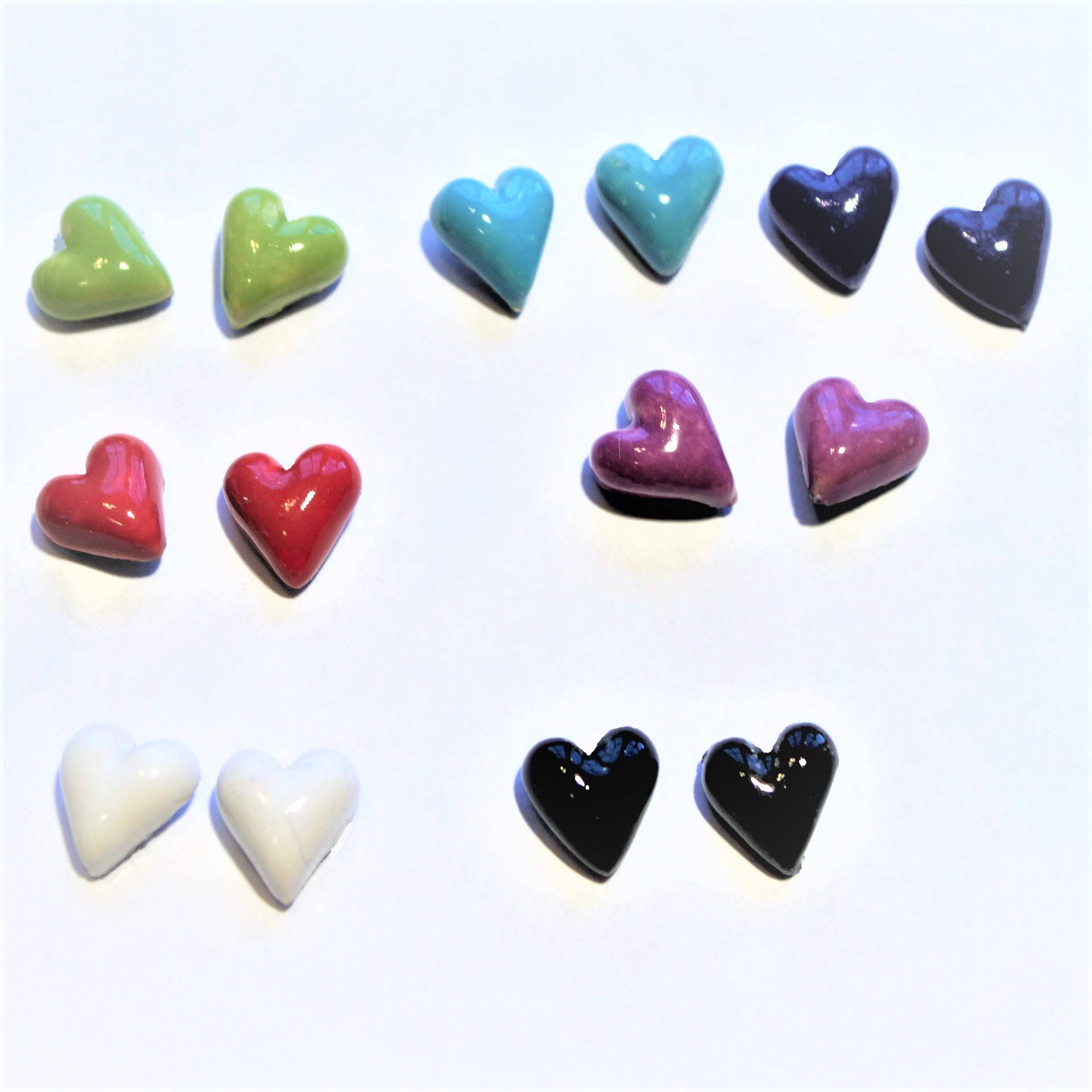 Tre ørepynt med stikk i kirurgisk stål. Størrelse 1 cm x 1 cm.