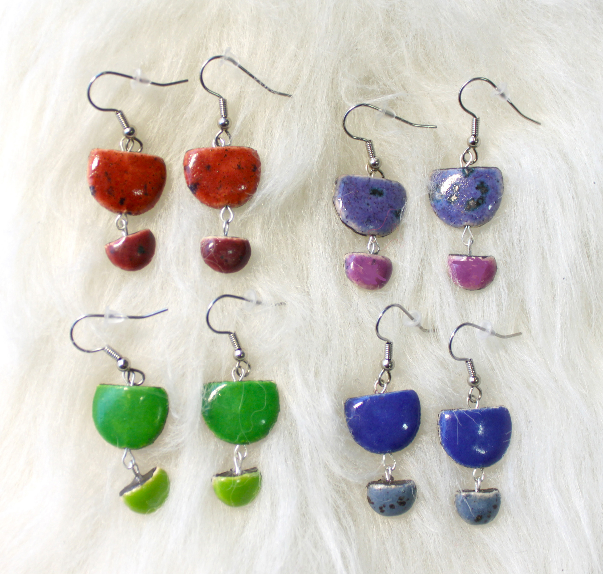 Keramikk ørepynt, krok i kirurgisk stål. Størrelse 2, 5 x 1,5 cm..