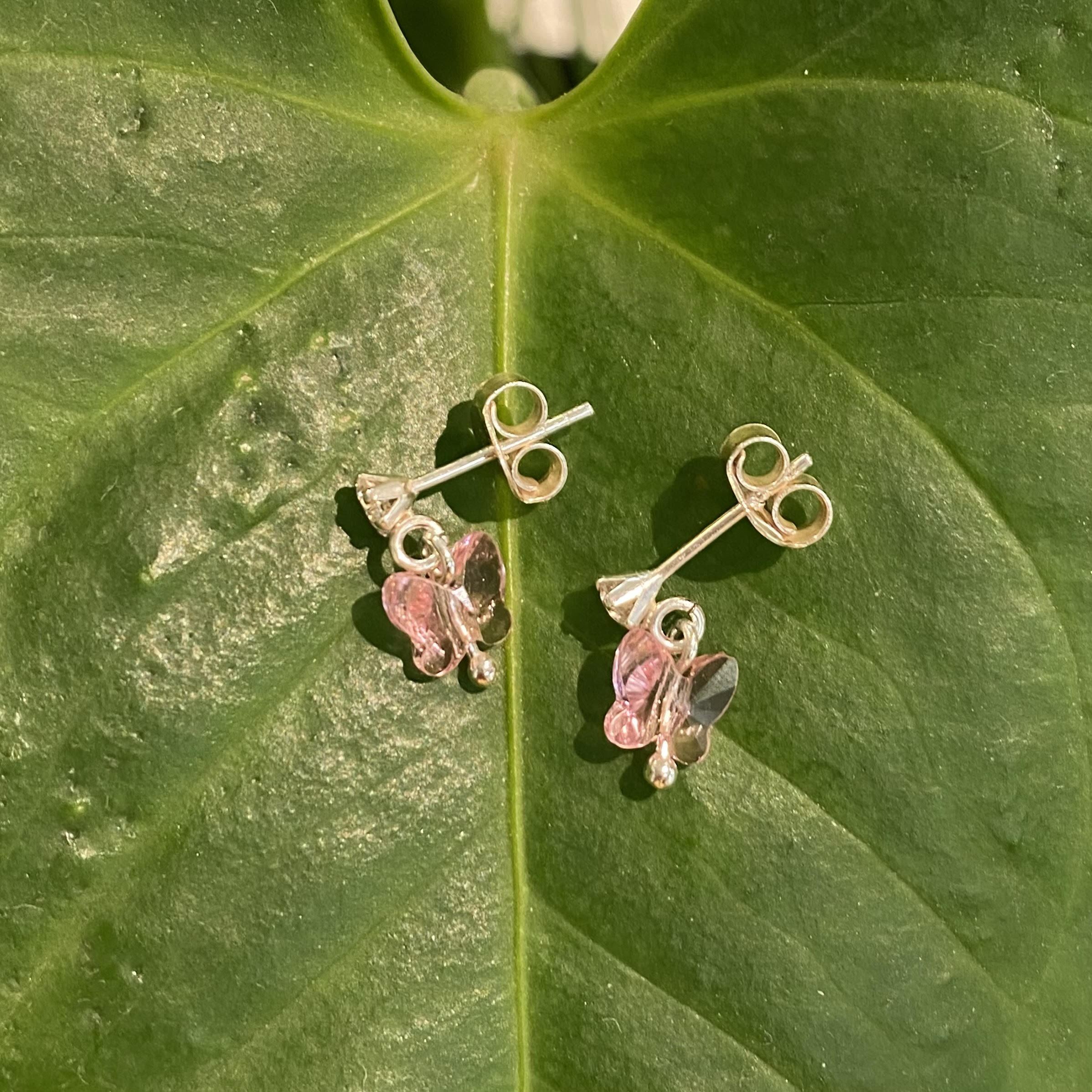 Sølv ørepynt med hengende sommerfugler med steiner.