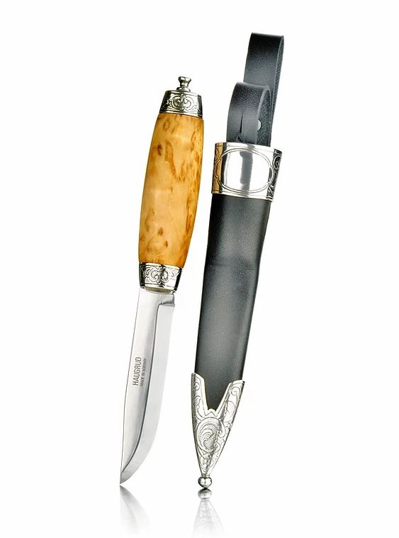 Følger med taske med tinn detaljer til kniven.