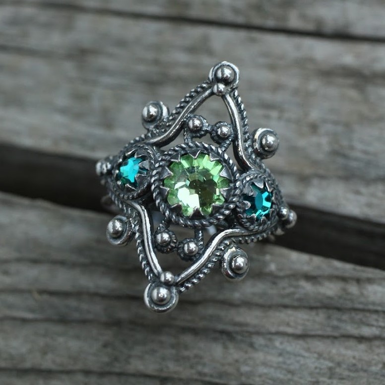 Regularbar ring i oksidert sølv med Swarovskikrystall.