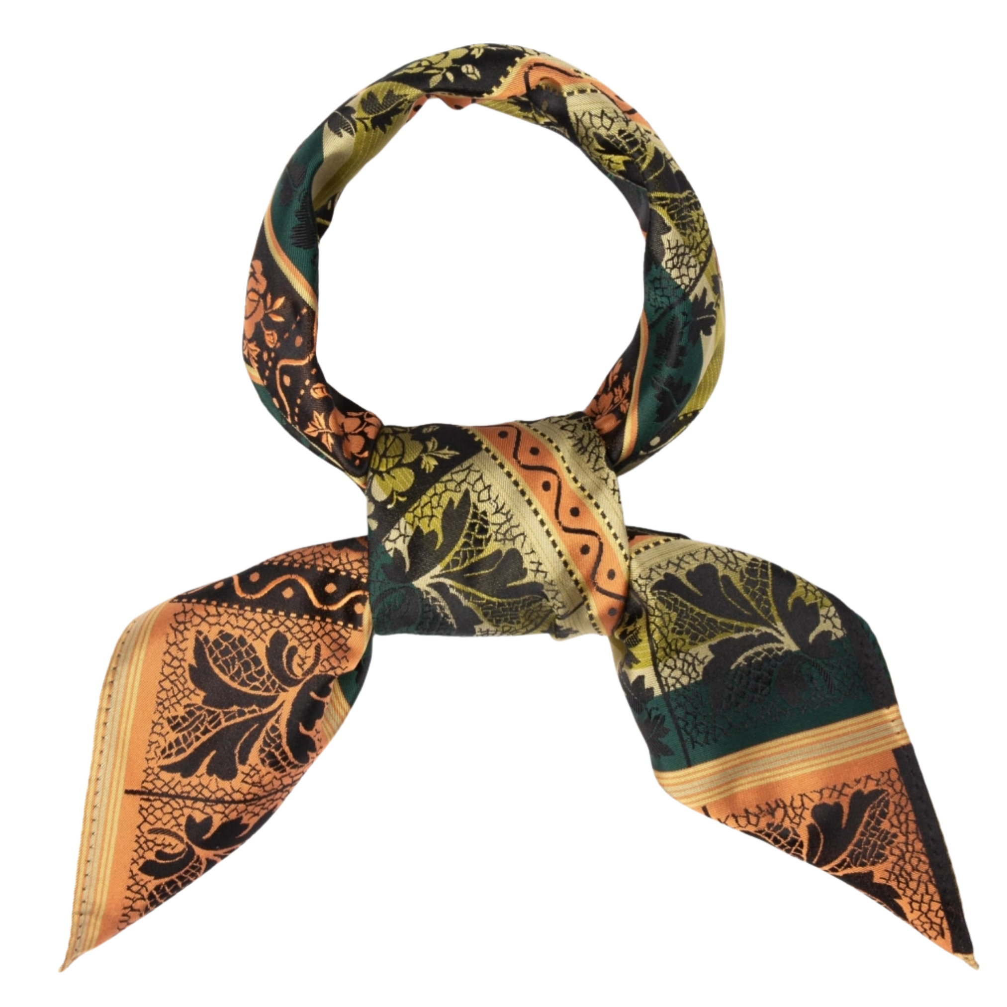 Beskrivelse Silkeskjerf til pynt, bunad og festdrakter. Silkeskjerf brukes til bunader og festdrakter over hele landet, men passer like godt som en "fargeklatt" for antrekk i hverdagen. Silke har mange gode egenskaper. Det er mykt og godt å ha på samtidig som det varmer om det er kaldt. Vi bruker kun den beste silke når vi produserer våre skjerf og de har flotte jacquard mønstre med farger som passer i tiden. Behandling: Håndvask med såpe beregnet for silke Kvalitet: 100% silke Størrelse: 75 x 75 cm Bilde lånt av leverandør. |