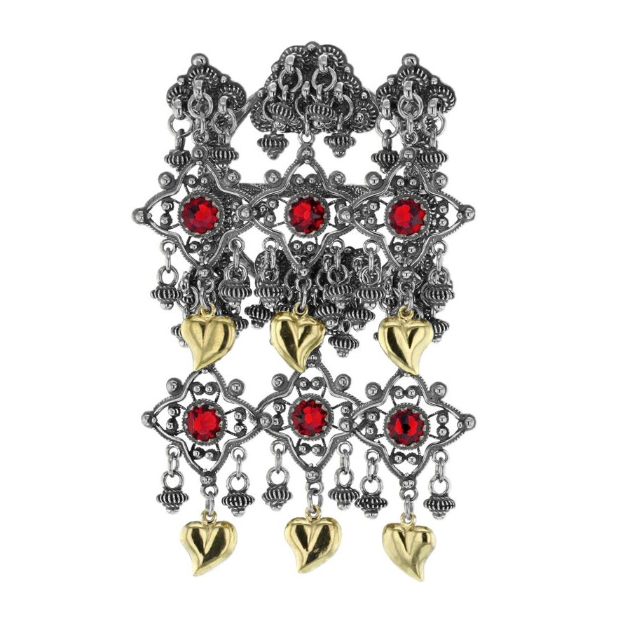 Bøheradsring i antikkgylt sølv med hjarta i farge 01.