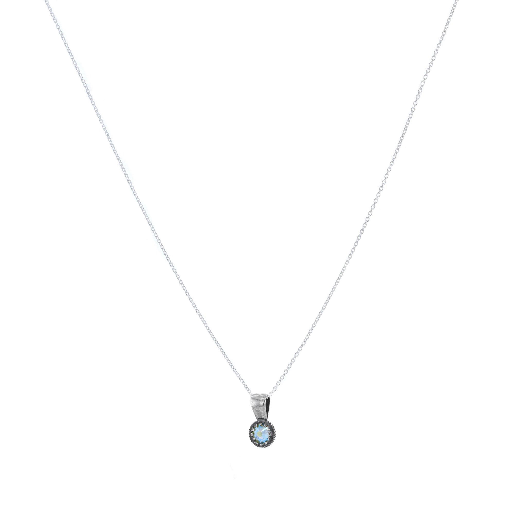 Halskjede i oksidert sølv med Swarovskikrystall. D 1,7 cm. Kjedelengde 42 cm.