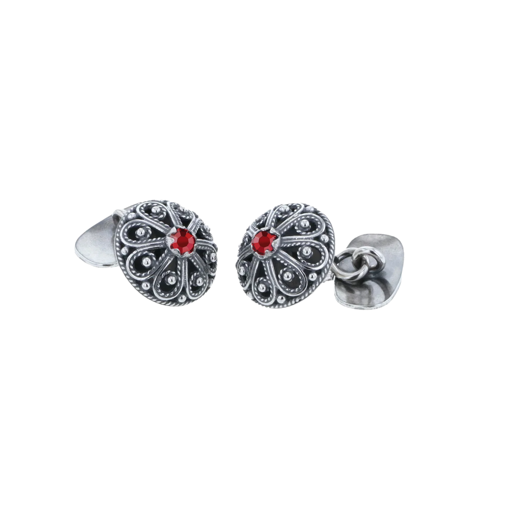 Mansjettknapp filigran med krystall, oksidert - Rød 01