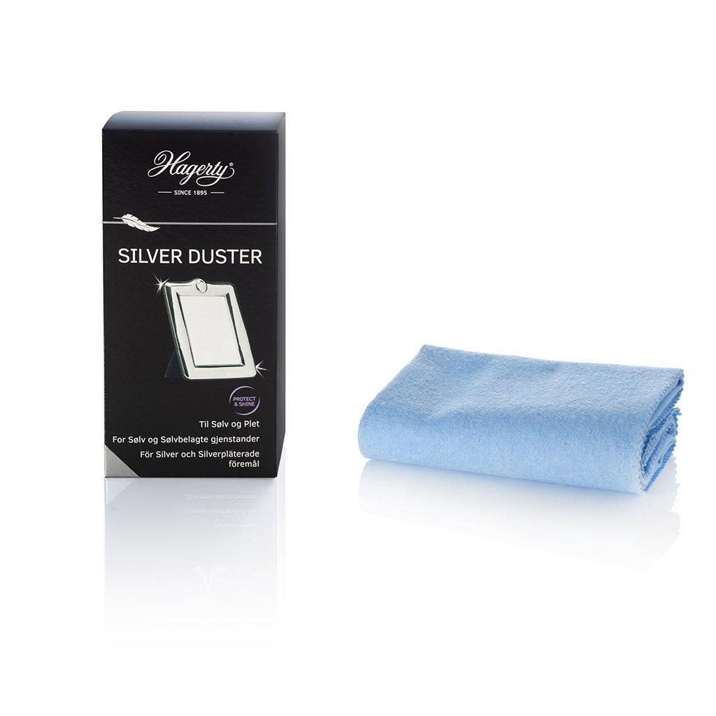 Beskrivelse Rengjør og pleier sølv og forsølvet metall. Den tillater daglig og raskt vedlikehold av sølv eller forsølvede objekter som har blitt oksiderte, og gjenoppretter den originale glansen. Det impregnerte materialet gir artiklene tilbake glansen. Takket være dets impregnerte bomull får Silver Duster vaser, rammer og andre mattede artikler til å skinne. Kluten beskytter, fjerner skitt og oksidering fra dekorative objekter og andre verdifulle sølvartikler og forsølvede artikler. Det opprettholder grundig mattet sølv. Pleien fungerer raskt, er effektiv, og ødelegger ikke artiklene. Rengjøring er enkel, gir øyeblikkelige resultater, og fører ikke til mikroskrammer eller merker på metallet. Sølv og forsølvede objekter er rene og skinnende igjen. INSTRUKSJONER FOR BRUK - Poler sølvet forsiktig men grundig for å påføre det matthetsforebyggende midlet. - Ikke vask kluten. - Bytt ut kluten så snart den er helt svart. - Kluten møter STANDARD 100 by OEKO-TEX®. For pleie av sølv og forsølvede artikler, se også Silver Gloves. Visste du? Sølv er et edelmetall som må rengjøres hyppigere enn andre. Det svertes faktisk ved kontakt med sulfid, som finnes i luften, og som fremskynder oksidering. Dermed, hvis du vil sakke ned prosessen og beskytte sølvartiklene dine, må du lagre dem på et tørt og lukket sted. Du kan også bruke beskyttende dekker, som Silver Guard Holloware Bag fra Hagerty. Hvis artiklene dine brukes for dekorasjon, må du være klar over at de vil trenge hyppigere vedlikehold. Bilde og tekst lånt fra leverandør nettside! |
