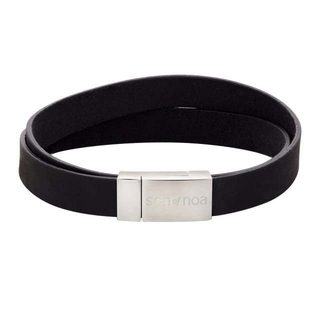 Silver bracelet black calf leather - 10mm