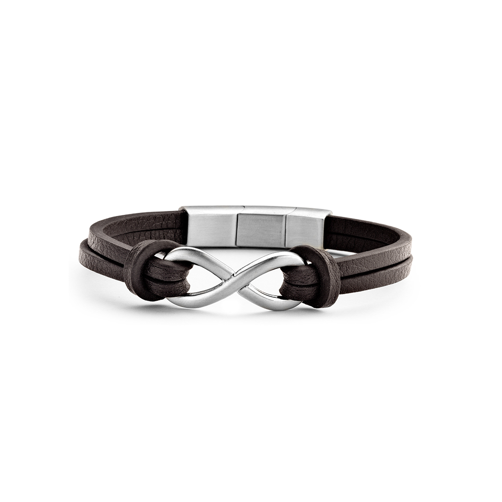 Beskrivelse Robust flerlags skinnarmbånd fra Audacious Leather-kolleksjonen fra Frank 1967. Denne serien har en variant av tøffe skinnarmbånd. Tilgjengelig i forskjellige farger. Dette armbåndet er laget av høykvalitetsmaterialer, som ekte skinn og rustfritt stål. Uendelighetssymbolet er 1,5 × 3 cm. Lengden er 21 cm, men kan forkortes til 20 cm ved å fjerne forlengelsen. Utstyrt med skyvelukking. |