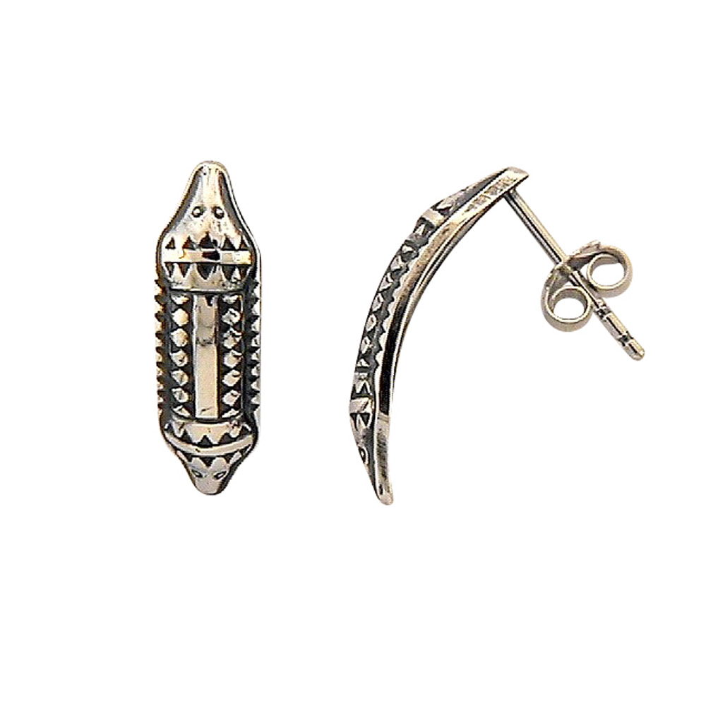 SAGA-sølv-ørepynt-oksidert-” drage”- Vakkert dekorert smykke. Avsluttet på begge sider av fryktinngytende dragehoder. Laget ca. 300 e. Kr. Funnet i Førde, Sunnfjord