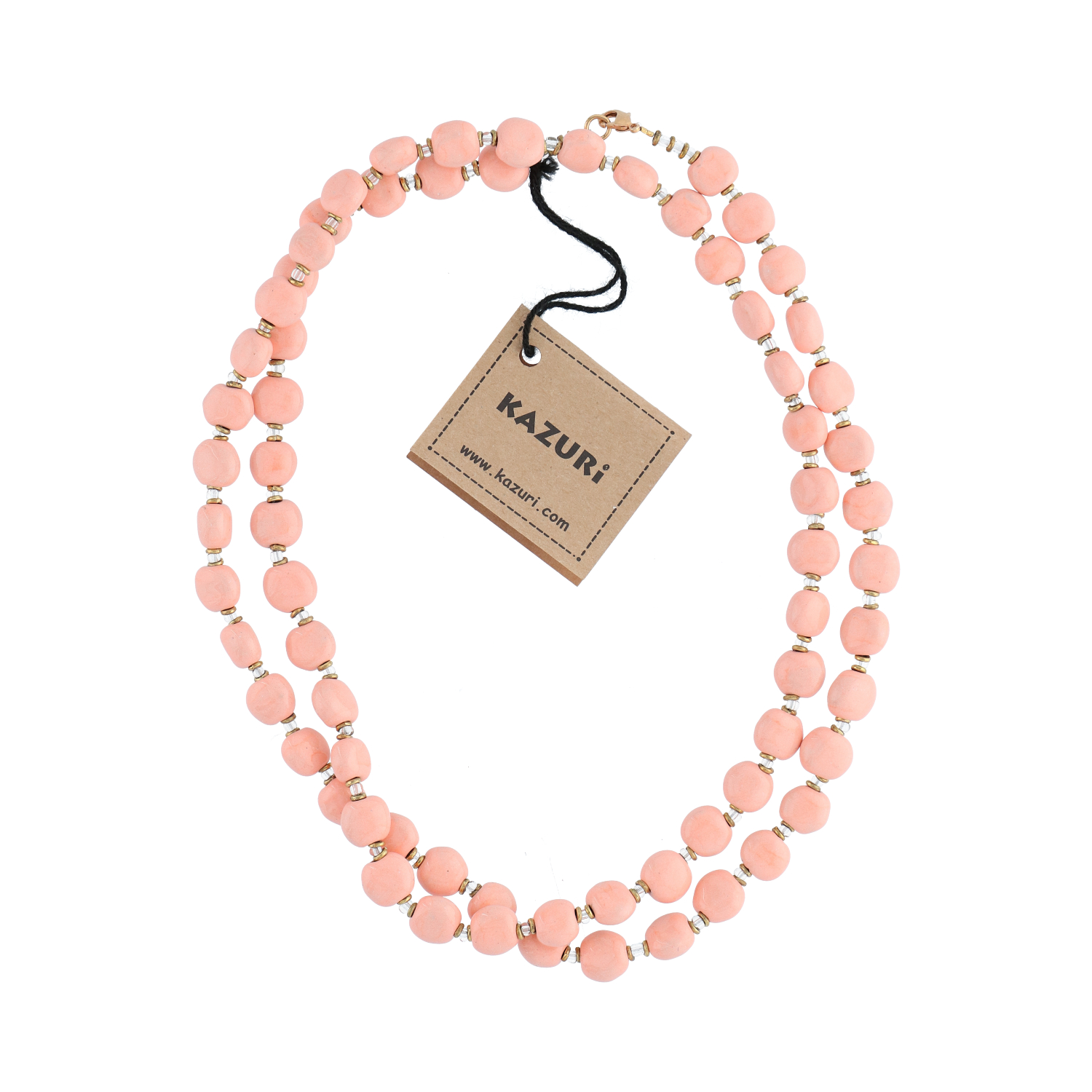 Beskrivelse Perlerne er trådet på fiskesnørre og låsen, samt mellemstykkerne er lavet i forgyldt kopper. Den er nikkelfri efter lovgivningen. Laget av keramink. Håndmalte perler fra Kenya. |