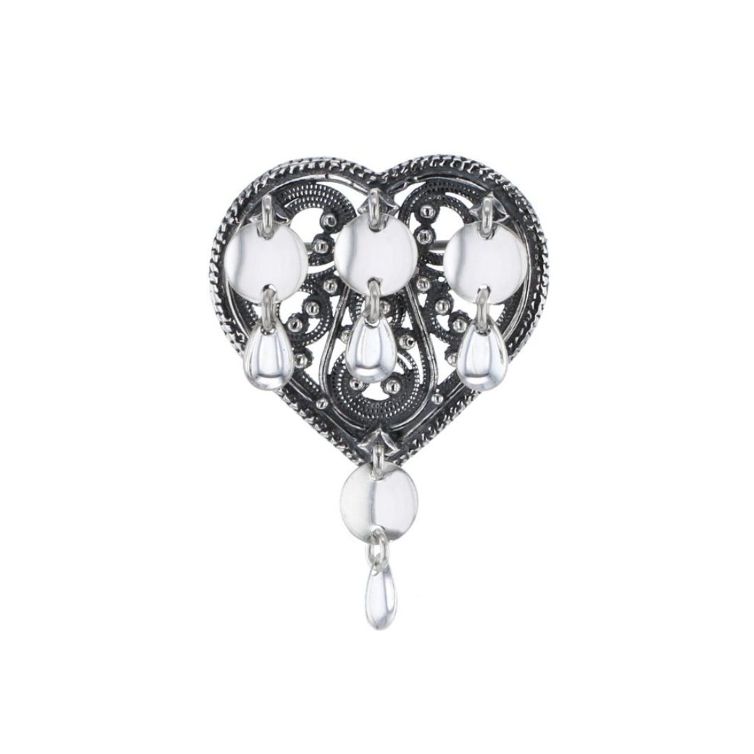Beskrivelse Hjartesølje med lauv i oksidert sølv. Material: 830 sølv, oksidert Hjartesølje kombinert anheng, hempe til kjede. H: 3,3 cm inkludert lauv B: 4,6 cm. H 3,3 cm B 4,6 cm. |