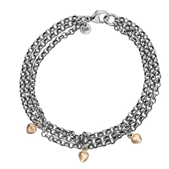 Beskrivelse Med nydelige små mattede gullhjerter festet tilsynelatende tilfeldig på armlenken blir Elise vakker, leken, ung, men allikevel klassisk. 3 rader kjeder oksidert sølv 925 danser lett sammen og gjør nettopp denne armlenken til et drømmesmykke. Elise passer til alle og matcher godt med øvrige Huldresølv smykker, spesielt i Duggperle kolleksjonen. Armlenken har en lengde på 19cm. Bilde lånt fra leverandør nettside: https://huldresolv.no |