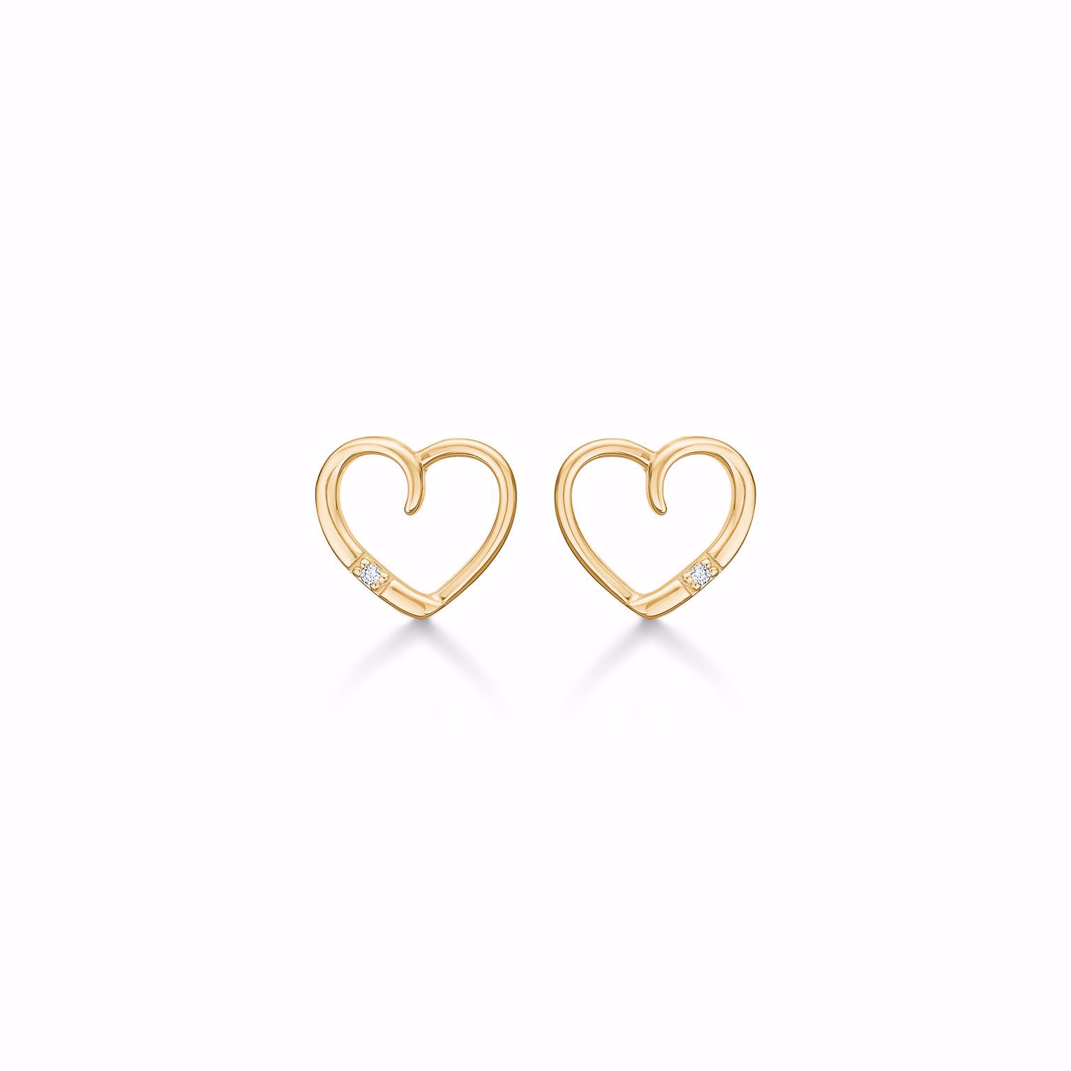 Gull hjerte ørepynt 14kt. med brillant