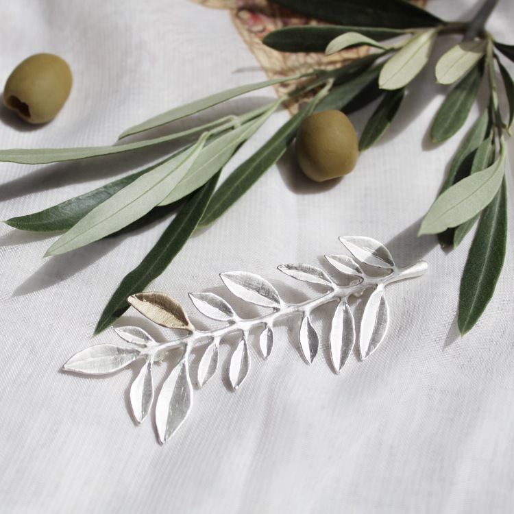 Beskrivelse Olive Branch Brooch er en fantastisk brosje med nåler og nål. Den er laget av 925 sterling sølv og har delikate detaljer i 14c gull. Den klassiske brosjebollen gjør det enkelt å dekorere alt fra skjerf til hår og er en vakker olivengren. Metall: 925 sterling sølv Detaljer: Forgylt Størrelse: One size Bilde lånt fra leverandør nettside: www.lottajewellery.com |
