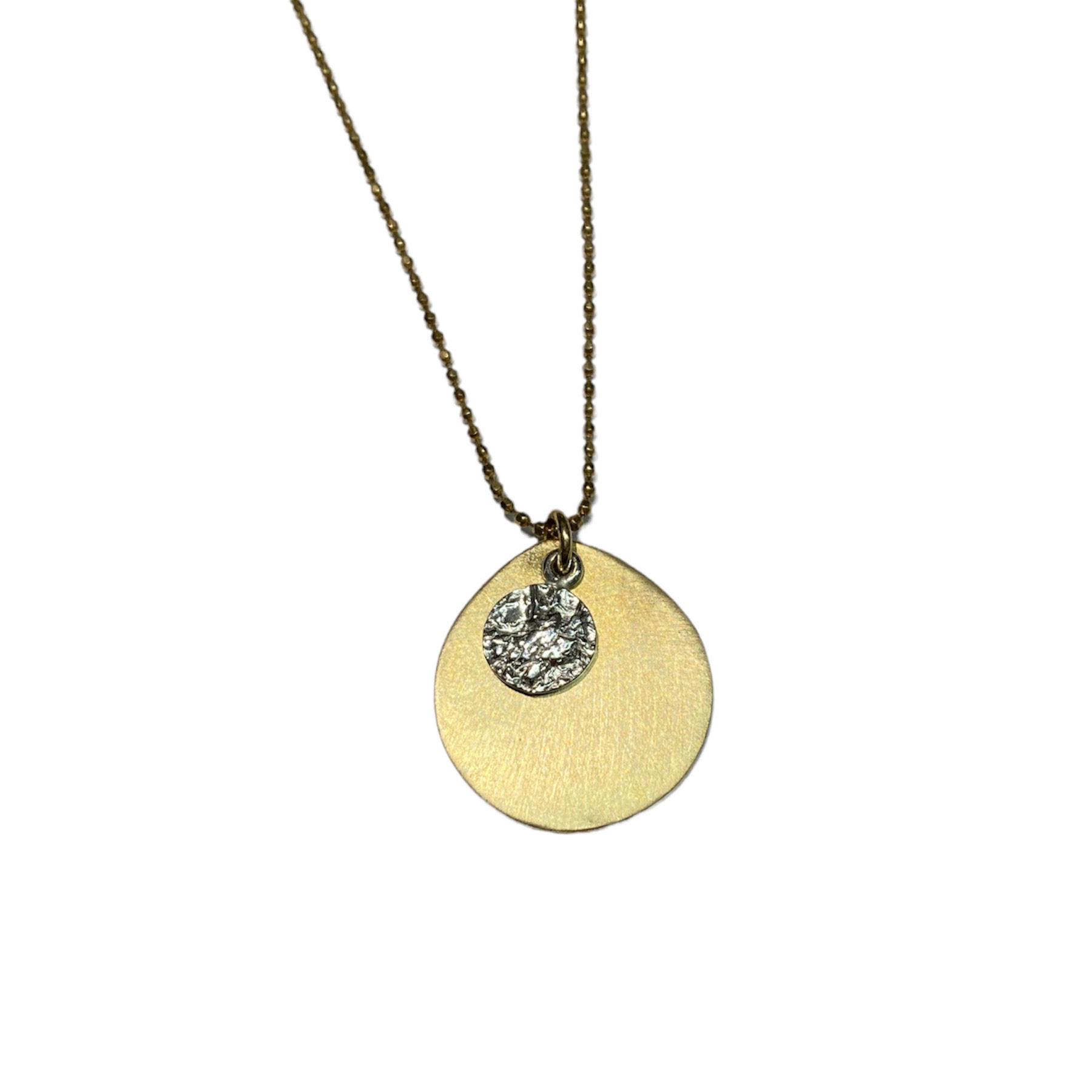 925 forgylt sølv lenke med forgylt plate og blank sølv anheng.