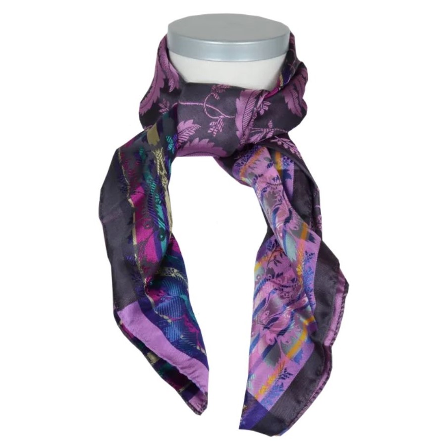 Beskrivelse Silkeskjerf til pynt, bunad og festdrakter. Silkeskjerf brukes til bunader og festdrakter over hele landet, men passer like godt som en "fargeklatt" for antrekk i hverdagen. Silke har mange gode egenskaper. Det er mykt og godt å ha på samtidig som det varmer om det er kaldt. Vi bruker kun den beste silke når vi produserer våre skjerf og de har flotte jacquard mønstre med farger som passer i tiden. Behandling: Håndvask med såpe beregnet for silke Kvalitet: 100% silke Størrelse: 70 x 70 cm Bilde lånt av leverandør. |