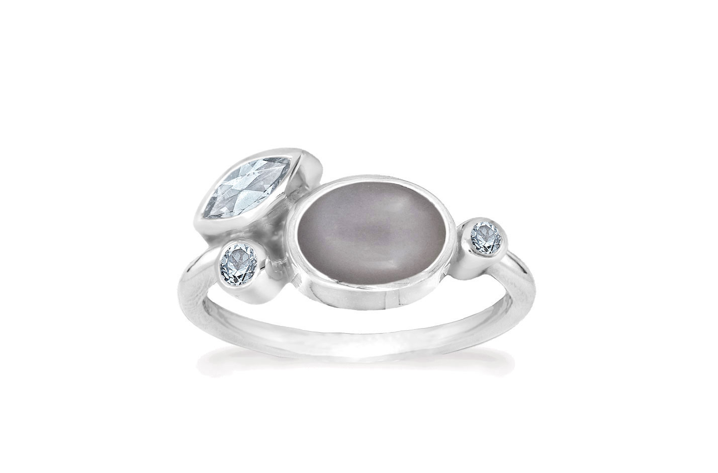8x6mm grå månesten, 6x3mm sky blue topas, 2,5mm sky blue topas, 2mm sky blue topas