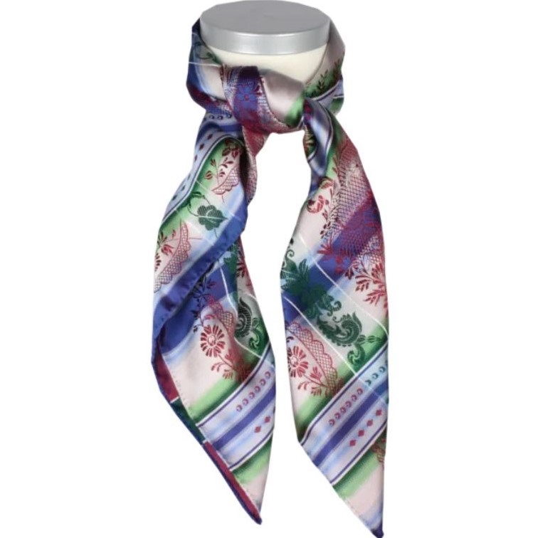 Beskrivelse Silkeskjerf til pynt, bunad og festdrakter. Silkeskjerf brukes til bunader og festdrakter over hele landet, men passer like godt som en "fargeklatt" for antrekk i hverdagen. Silke har mange gode egenskaper. Det er mykt og godt å ha på samtidig som det varmer om det er kaldt. Vi bruker kun den beste silke når vi produserer våre skjerf og de har flotte jacquard mønstre med farger som passer i tiden. Behandling: Håndvask med såpe beregnet for silke Kvalitet: 100% silke Størrelse: 75 x 75 cm Bilde lånt av leverandør. |